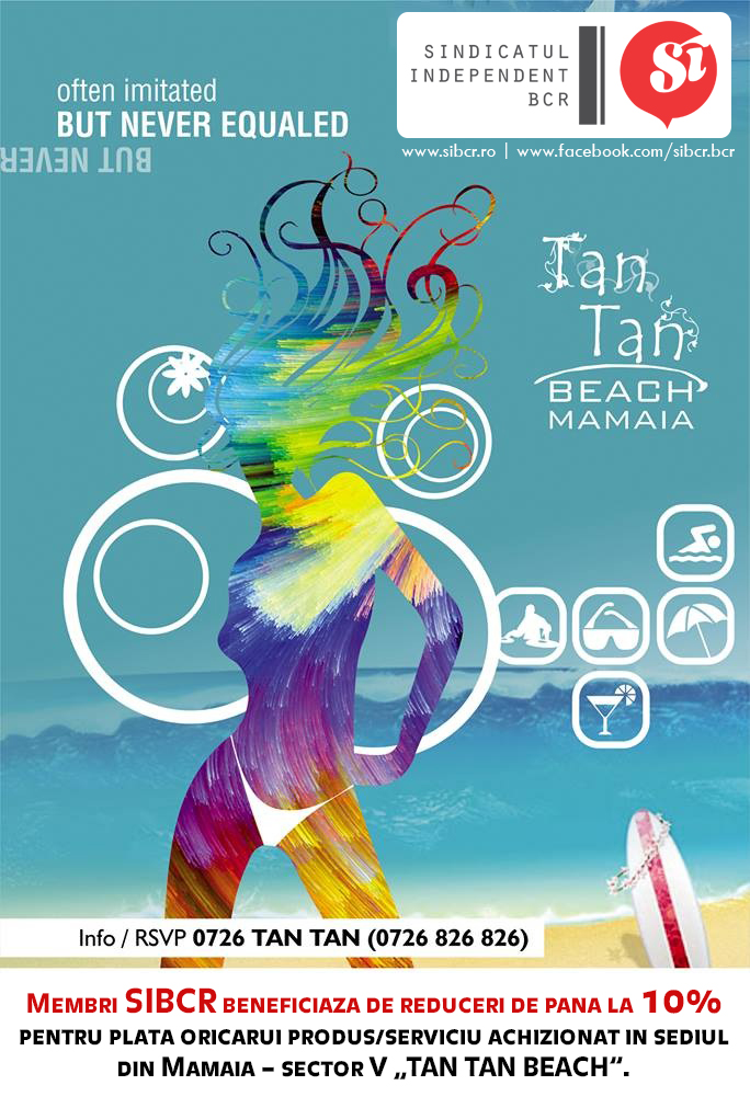 In perioada sezonului estival, membrii SIBCR impreuna cu insotitorii acestora beneficiaza de reduceri de pana la 10% pentru plata oricarui produs/serviciu achizionat in sediul din Mamaia – sector V „TAN TAN BEACH”.