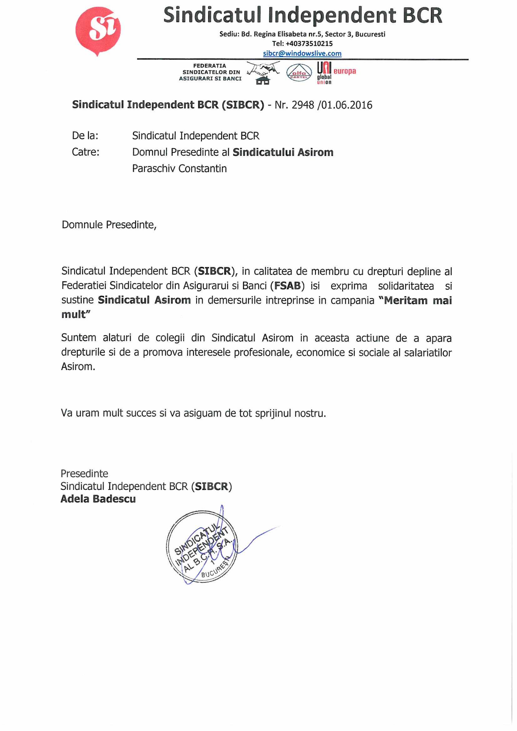 SIBCR sustine actiunea Sindicatului Asirom: “MERITAM MAI MULT!”