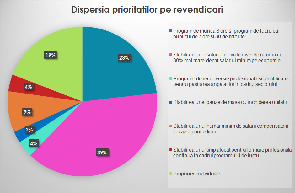 In urma prelucrarii tuturor raspunsurilor a rezultat urmatoarea dispersie a prioritatilor pe revendicari: