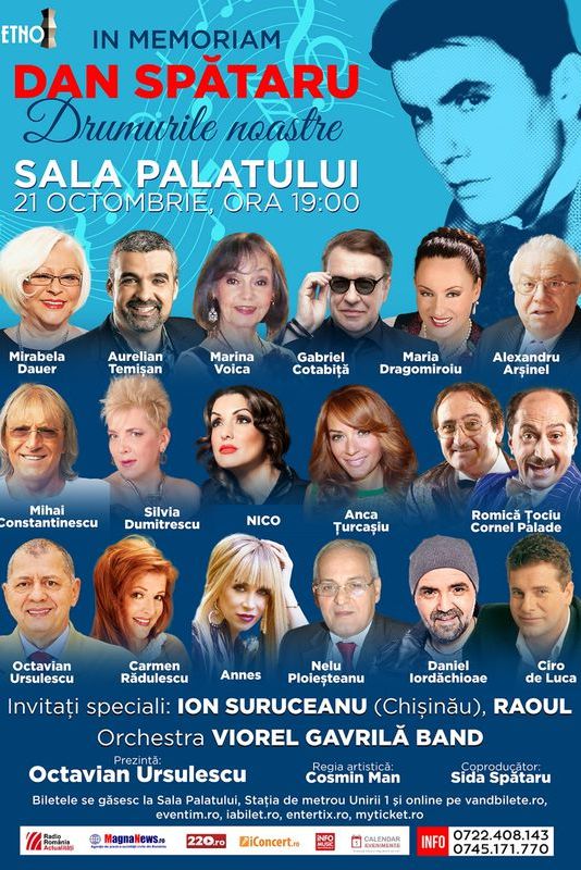 Avem deosebita placere sa va invitam la concertul – In Memoriam Dan Spataru, in data 21 octombrie 2018, la ora 19:00, la Sala Palatului, Bucuresti.