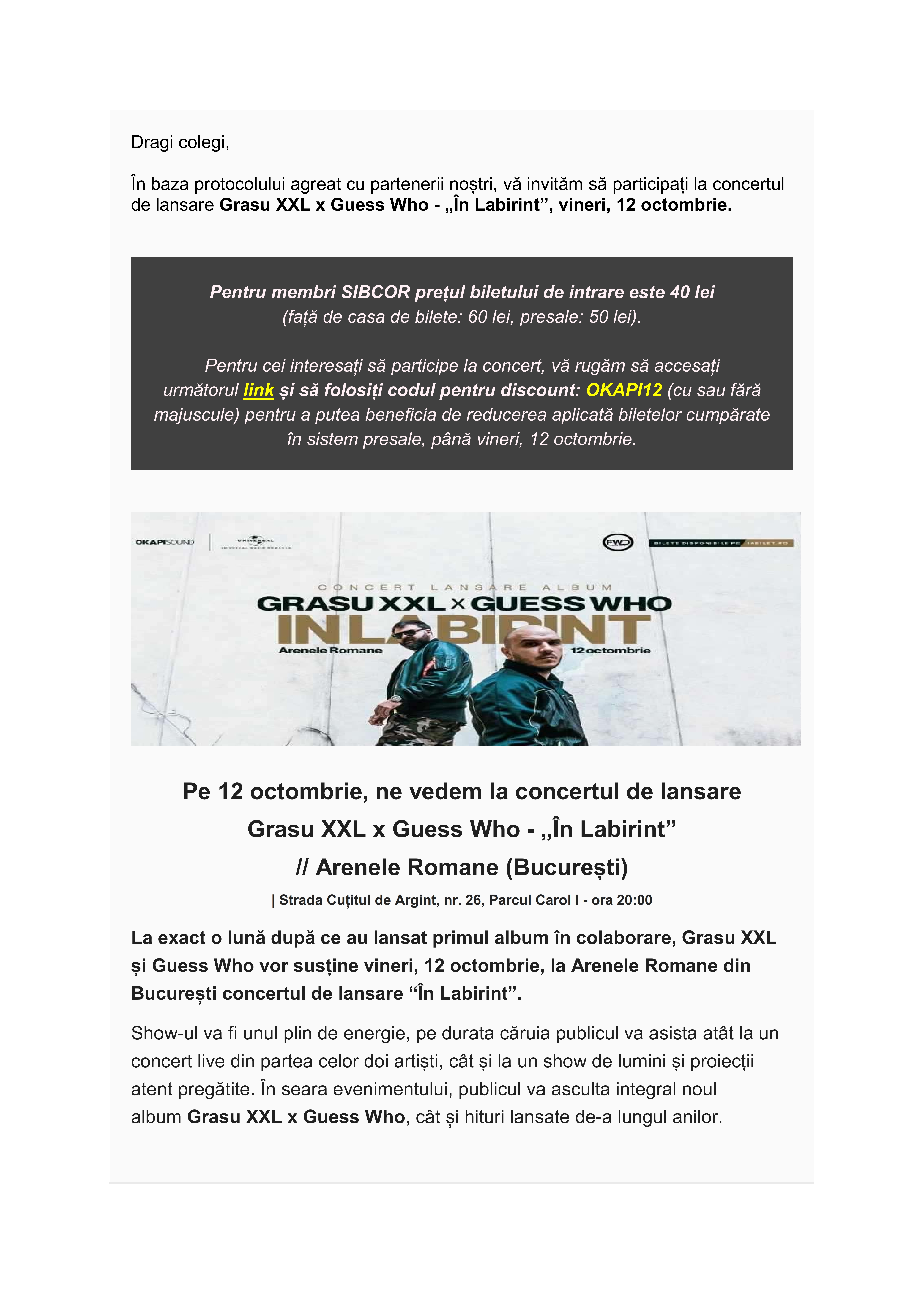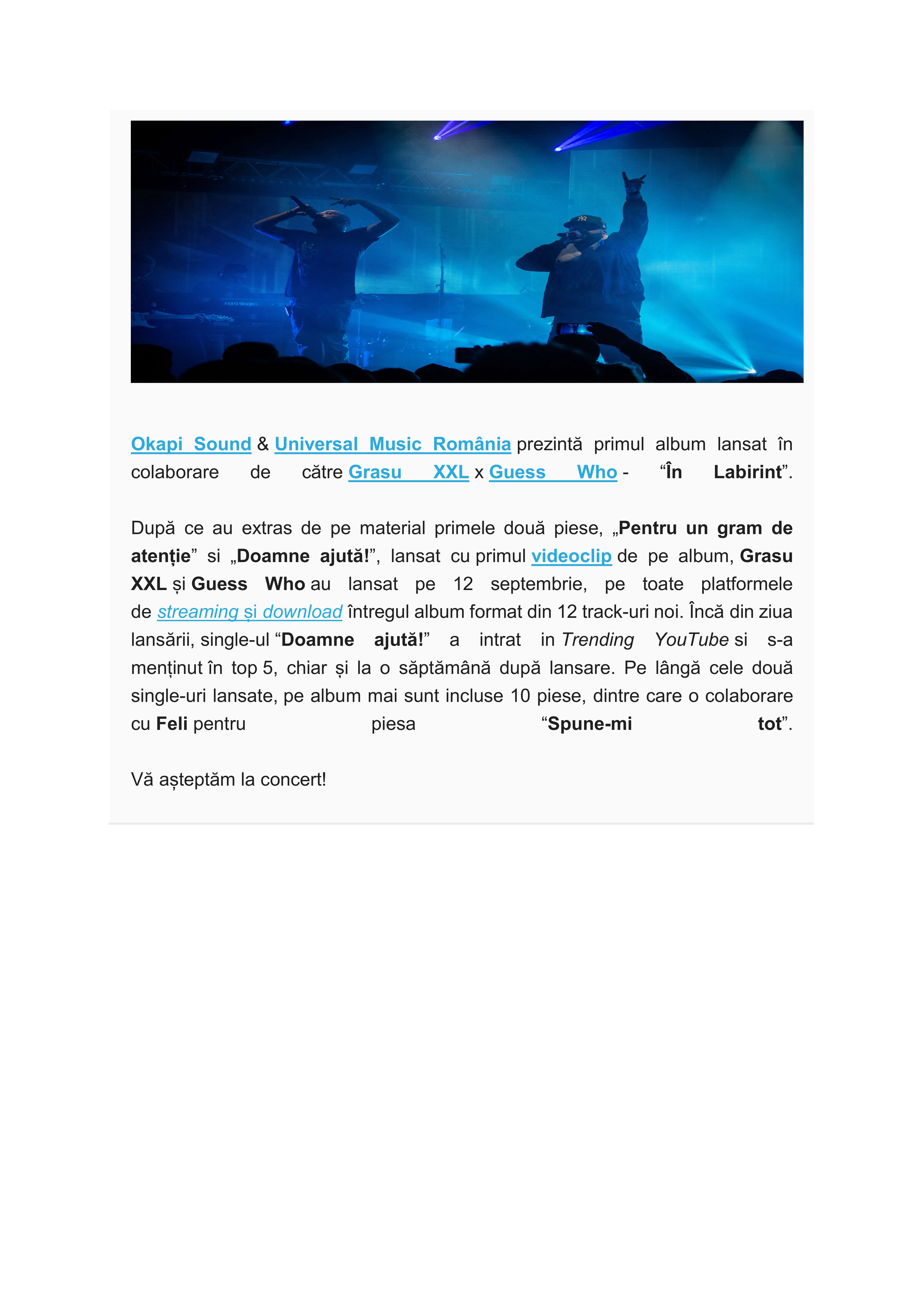 Eveniment – concert lansare album -” In Labirint” – Grasu XXL si Guess Who