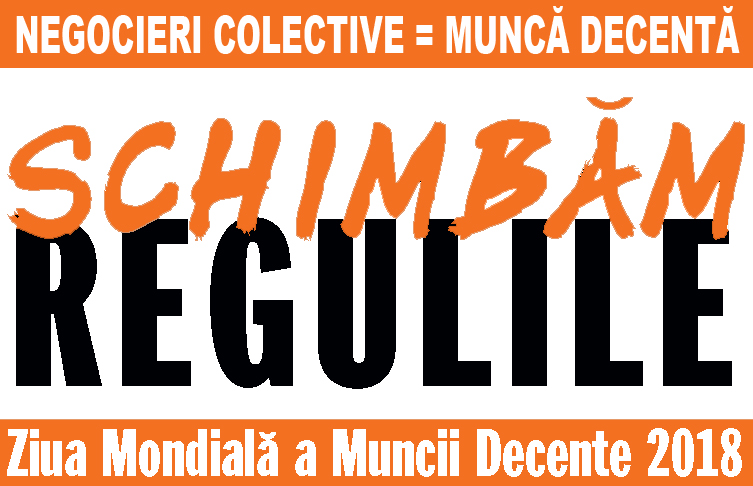 CNS Cartel Alfa, desfasoara o campanie legata de Ziua Mondială a Muncii Decente, cu titlul: Schimbăm regulile. Detalii despre tema campaniei gasiti pe site-ul confederatiei la sectiunea Campanii/ Schimbăm regulile : https://www.cartel-alfa.ro/ro/schimbam-regulile-70/