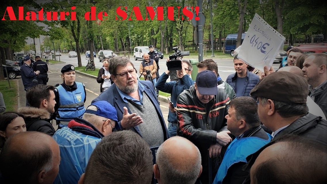 Suntem alaturi de colegii nostri din Cartel-Alfa Satu Mare – Samus Electrolux! Actiunea lor de finalizare a CCMului dupa doua luni de greva generala continua. Muncitorii companiei suedeze Electrolux din Satu Mare se află de 8 săptămâni în grevă pentru dreptul la un salariu decent, drept prevăzut inclusiv în codul de conduită al companiei multinaţionale. Ei cer o creştere de 2 lei în plus pe oră la salariu.
