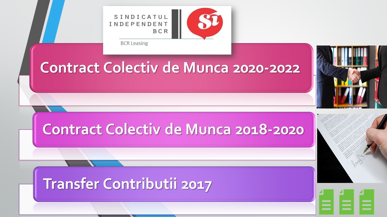 Vineri, 13 august 2020, dupa doua luni de negocieri, a fost semnat al doilea Contract Colectiv de Munca in BCR Leasing de catre SIBCR. Pasul urmator este sa finalizam intregistrarea la ITM Bucuresti.