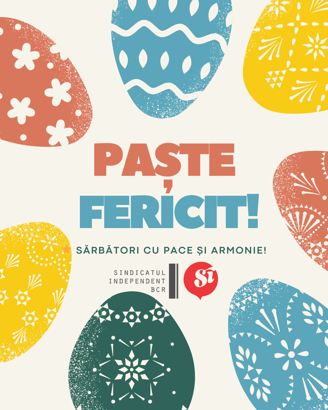 Fie ca lumina Învierii să vă aducă bucurie în suflet, echilibru în viață și încredere în viitor. Vă mulțumim pentru sprijinul și implicarea voastră constantă în comunitatea noastră sindicală.