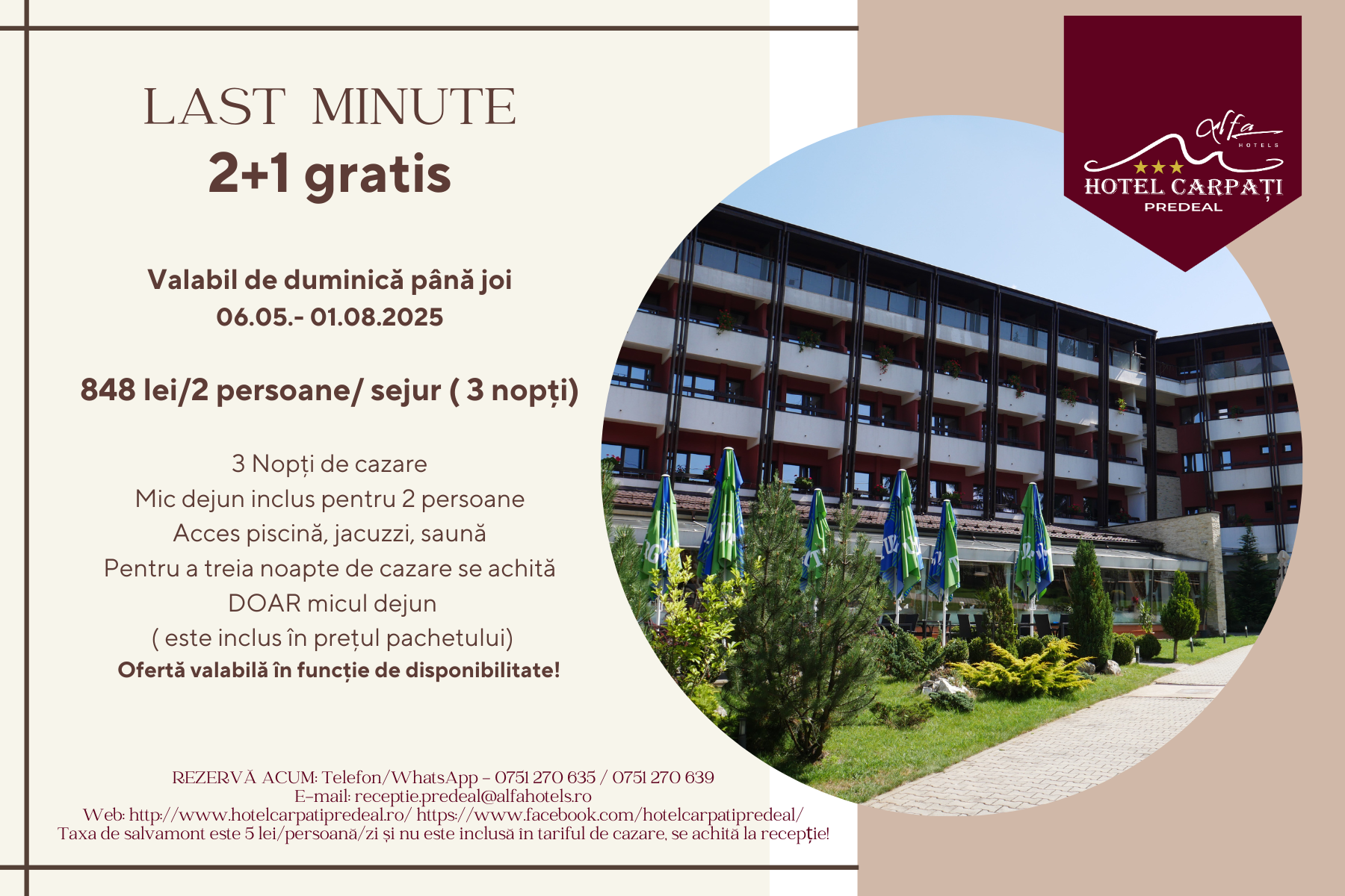 📅 Perioadă valabilitate: duminică – joi, între 06.05 – 01.08.2025