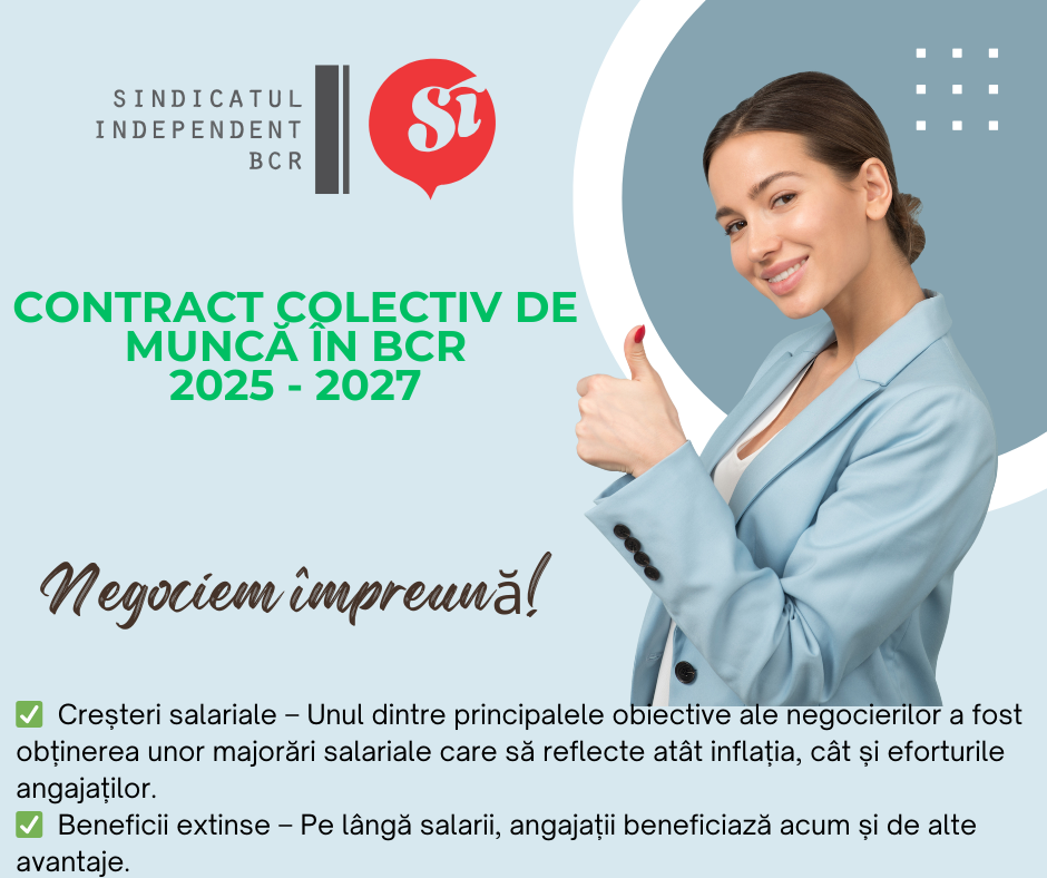 Dragi colegi, Vă anunțăm că negocierile pentru noul Contract Colectiv de Muncă (CCM) din BCR s-au încheiat și acesta a fost semnat!… Read More